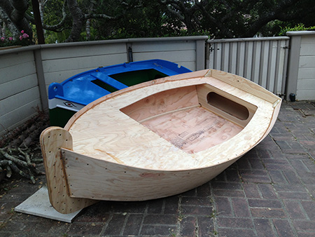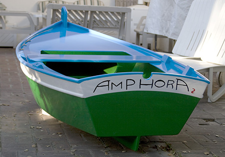 The AMPHORA is a great little boat. We wanted to get that out there right away. It’s simple enough to be built by beginner builders of all ages and still remain a satisfying project for someone who has built dozens of boats. We know this for a fact because we built the first one in the early 1970s and the latest one in 2013! The AMPHORA started out as a kid’s building project, one in the series of three books by Peter Stevenson, aimed at getting young builders making projects. Peter based the AMPHORA on the classic lines of Greek fishing boats, and the rugged, all-purpose style of those hearty craft carries over into the stable, easy-to-handle little version here. The AMPHORA is our simplest boat project, and having just built a new one, we were reminded just how perfect it is for first-time builders!