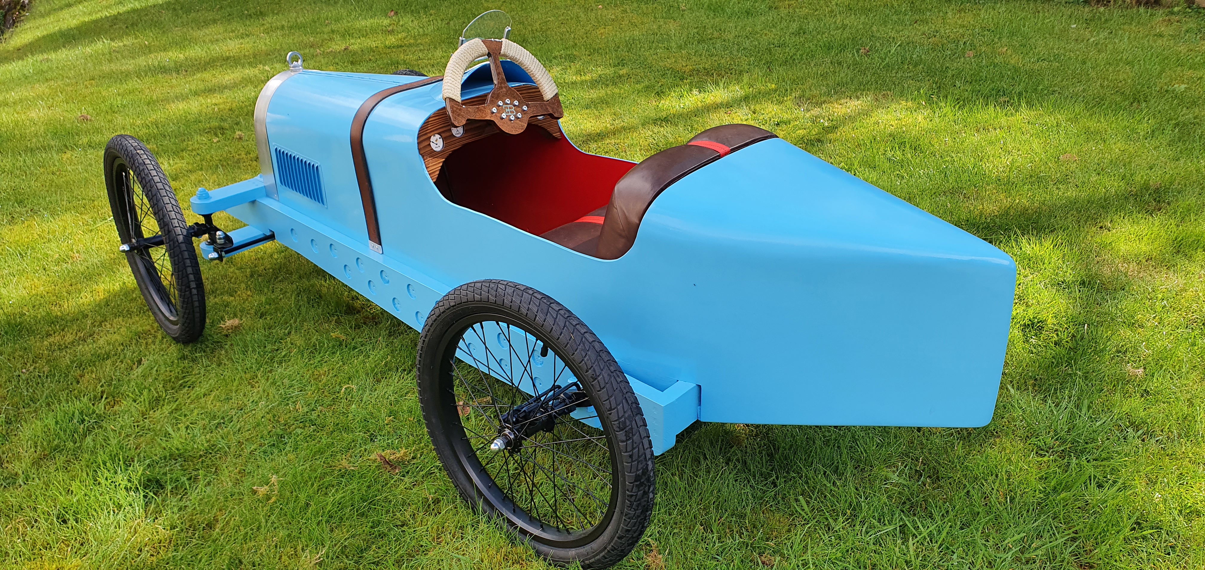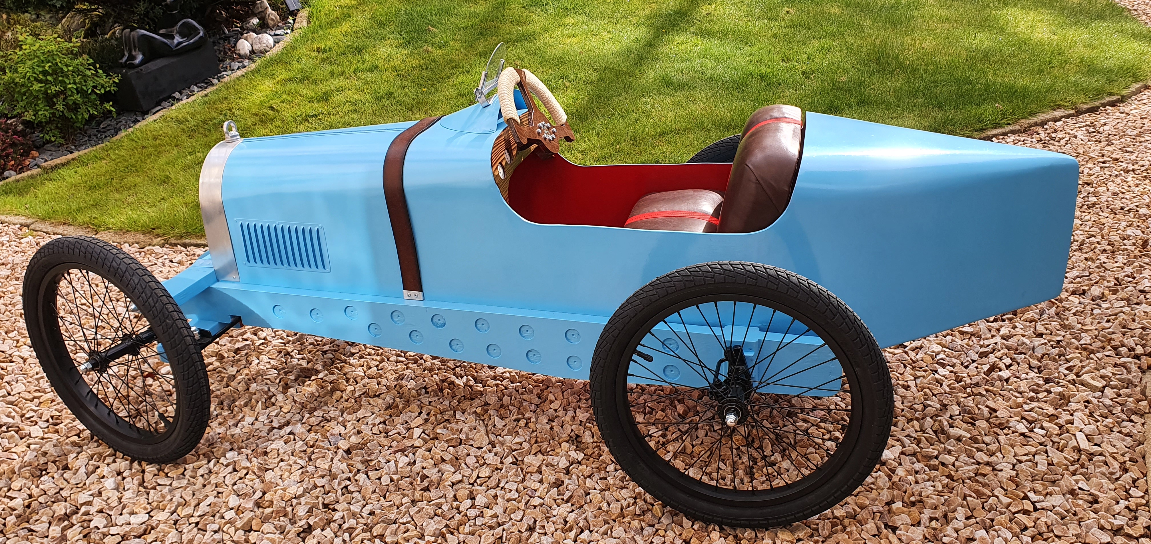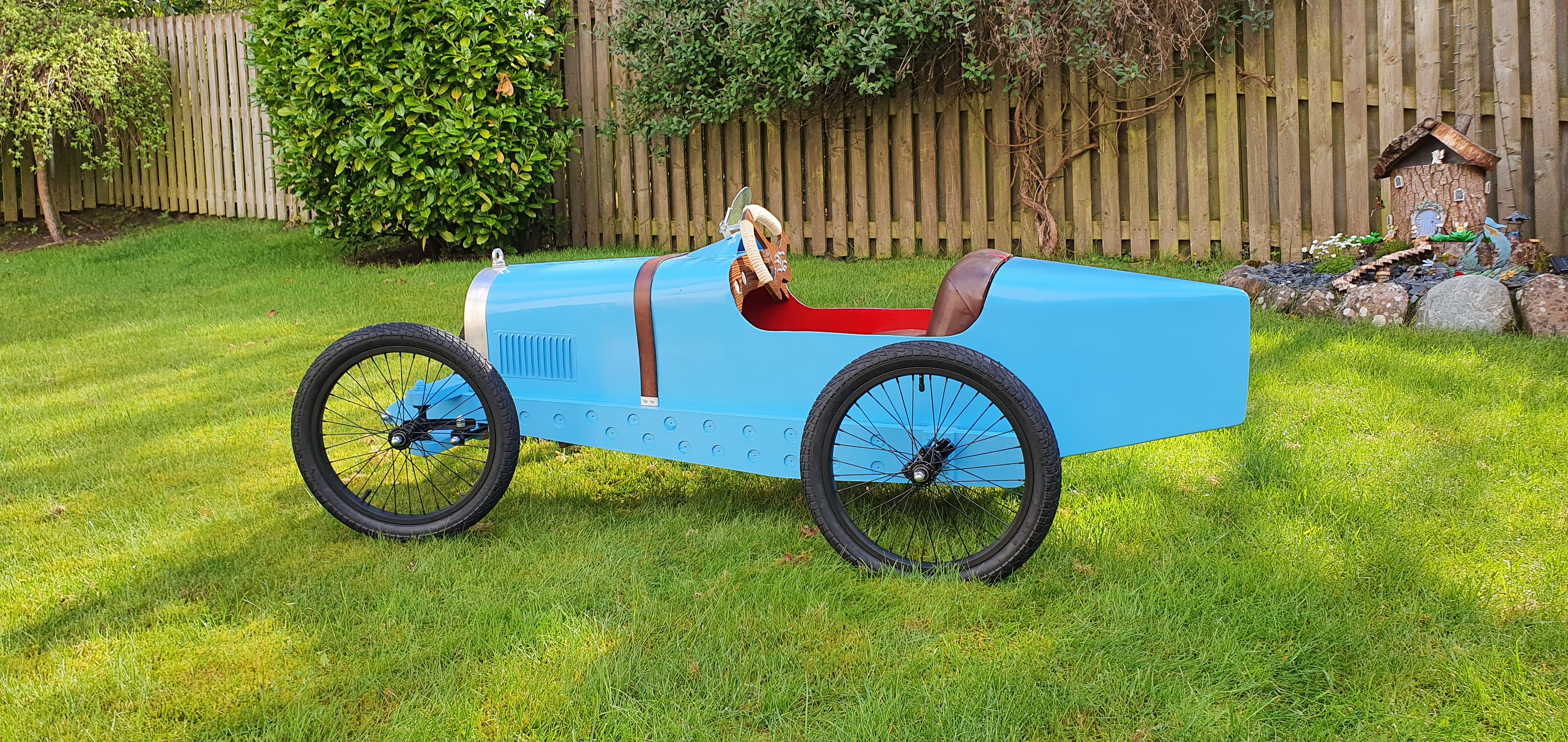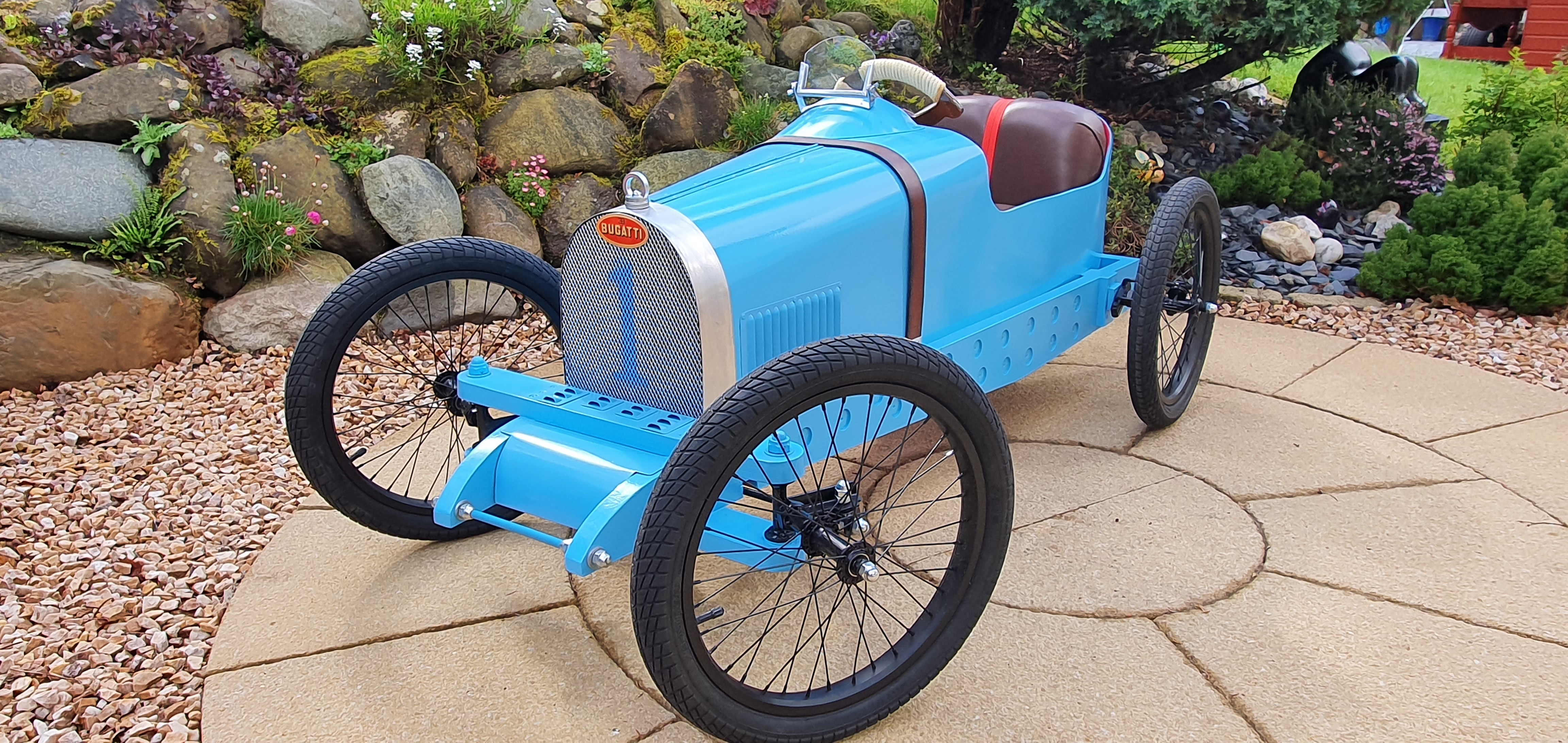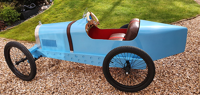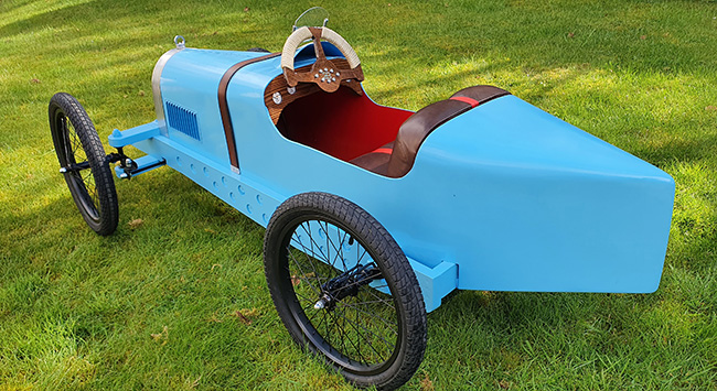Pedal Racer!While the classic Type 35 aluminum spoked wheels are a classic look, the spoke wheels are equally authentic, and I love the look! Gary has done a lovely job with his Pedal Racer, and we are very happy he's shared pics of his grandson's machine! We're getting quite the collection of Bugs and MG TCs in England — Well done, everyone!