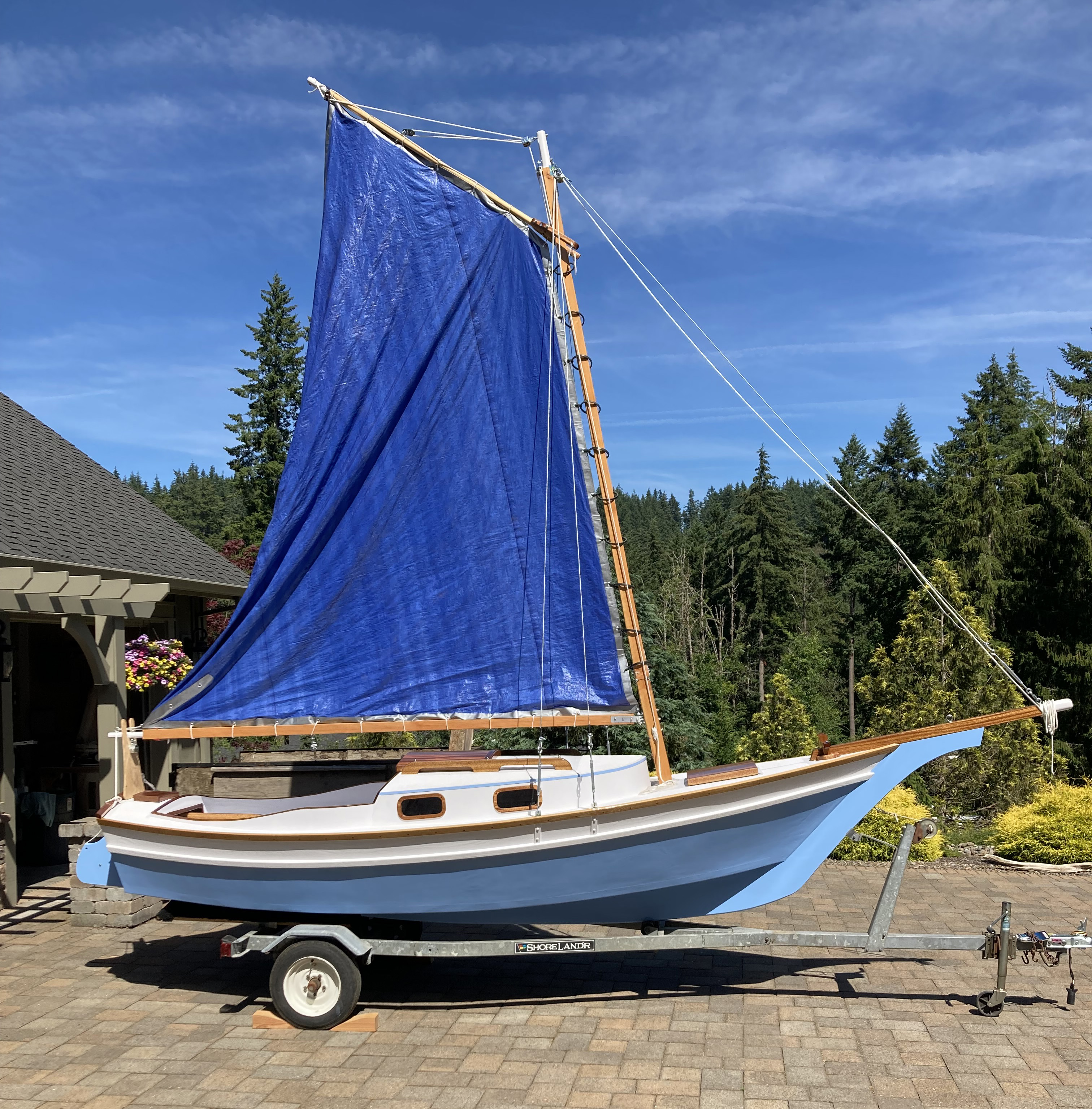 We love the light blue and white color choice, and it's Great to see a tarp sail and a Visqueen Lateen rig (clear polyethylene sheet). Those are the original styles these projects had when we designed them. More recently, we've been making our Lateen rig sails from tarp material, but it brings back excellent memories to see the clear sail! Nice touch.