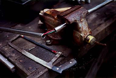 When cutting the pipe, be sure you don't cut the wires inside! Be careful also of the freshly cut pipe, as it will cut you and/or the wires as easily as the saw will.