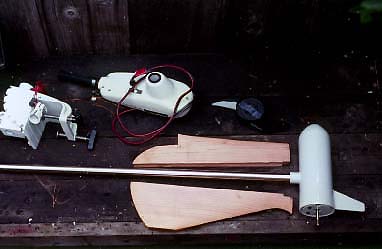In this photo one can see the major components of the trolling motor conversion.