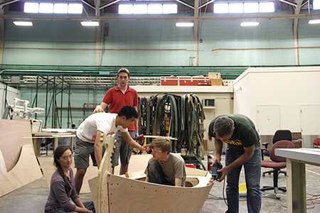 Dr. Franklin gathered a few of her students — some undergraduate, some just graduated, and one post-graduate, but all amazingly capable people — none of whom had ever a project like this before. We had just a week after the end of the school year to try and get two boats built, and we did!