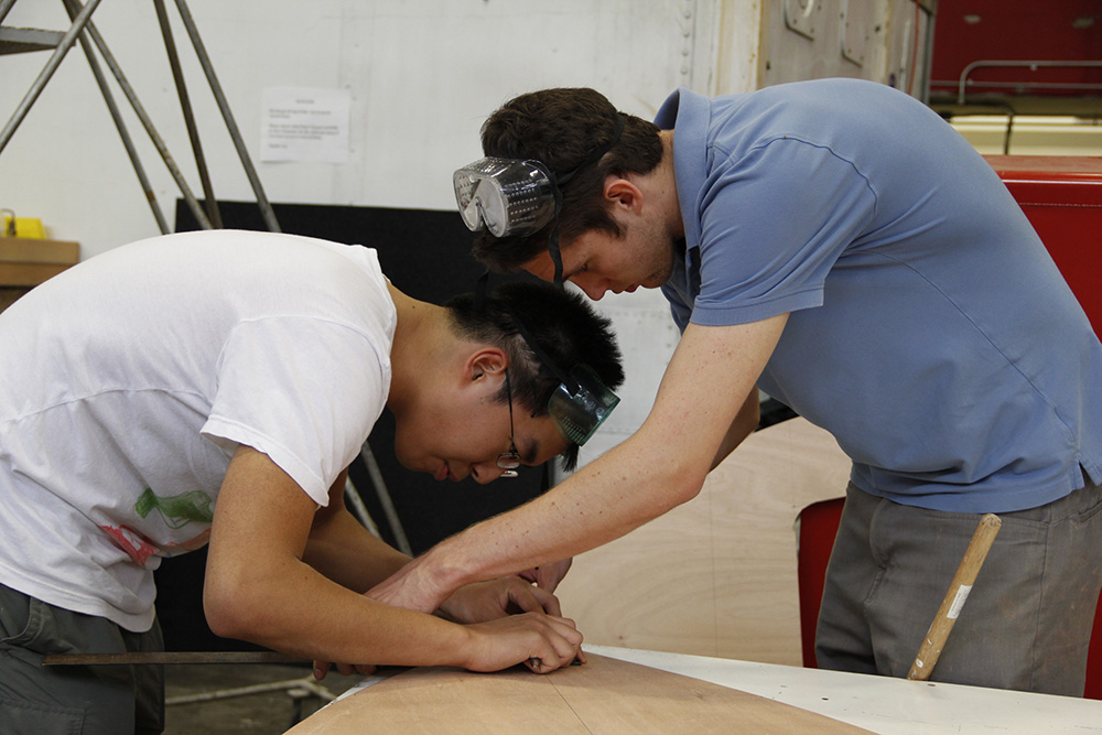 In June of 2013, we had the wonderful opportunity to work with some amazing people to build a couple of our Amphora rowboats at Harvard. We had known of Dr. Melissa Franklin's thoughts about the importance of working with one's hands at a young age, and the positive effects that can have on abstract problem solving and critical-thinking. We'd chatted with her about the idea of setting up a class or workshop to explore these ideas more, and Dr. Franklin very graciously set things up so we could work in the amazing and inspiring building which used ot house part of the Cambridge Electron Accelerator — A huge space with a superb workshop attached to it: Perfect for building little boats!