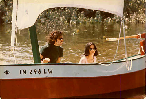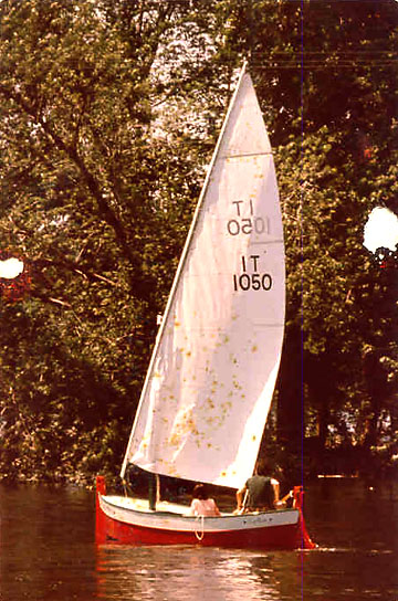 These are pretty surprising shots: The boat design is The Caliban, one of Peter Stevenson's very early works. It was the first of his designs featured in a magazine, Boating if I remember correctly. This was before we started handling the plans sales ourselves, and was probably at the tail-end of the 1960's.