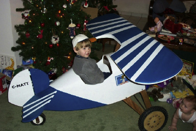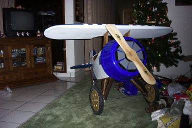 Mr. Oliver has built a nice Pedal Biplane, but he's made it more as a Pedal Parasol! (he's left the lower wing off.)