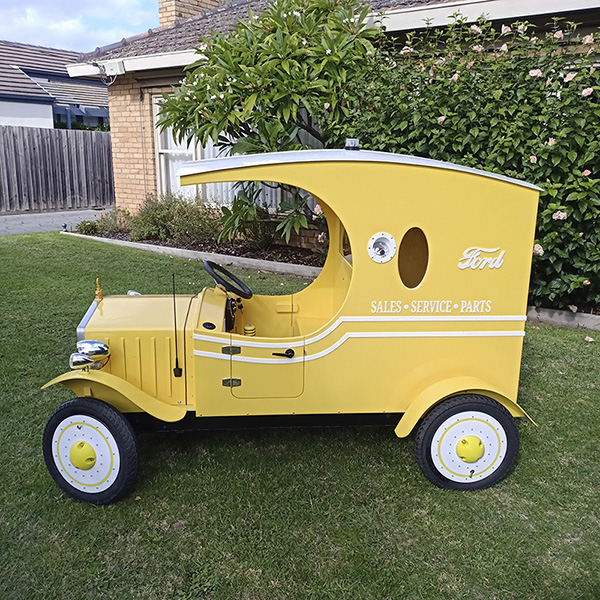 Mr. Wright has sent us photos of TWO cars he's built from our pedal car plans! Both have been modified: The MGTC has a 49cc engine, as well as lights and a horn! The Delivery-Wagon-inspired car is even more of a departure, as he modified not only the drivetrain, but also the proportions of his version of our Delvery Wagon! These are a new level of powered versions of our pedal car projects, and shading into our CycleKart ideas! Mr. Wright sent lots of photos, so we have created two pages for his cars!