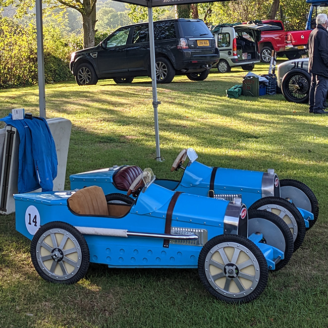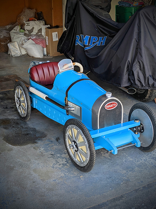 Mr. Abraham and a friend of his decided to make a beautiful pair of Pedal Racers! They live very near the Bugatti Club UK, and it makes perfect sense to me! This is a really amazing pair of Pedal Racers, and Jim sent a bunch of great photos, so we have puth them on a separate page so you can really get a feel for what a detailed and nice job they did building their little racers!
