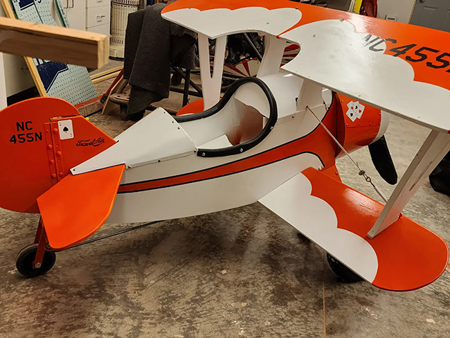 Mr. Davenport has built a gorgeous version of our Pedal Biplane, inspired by the REAL-life Travel-Air biplane he owns! What a wonderful couple of projects! CLICK HERE to see more photos of this great Pedal Biplane!