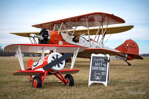 Congratulations! The newest Davenport, their Baby Barnstormer is happily already getting comfortable with the Pedal Biplane they will grow into soon! We are very happy for them and can't wait to see more photos as the youngest Davenport starts aerobatic training it the Pedal Bipe!