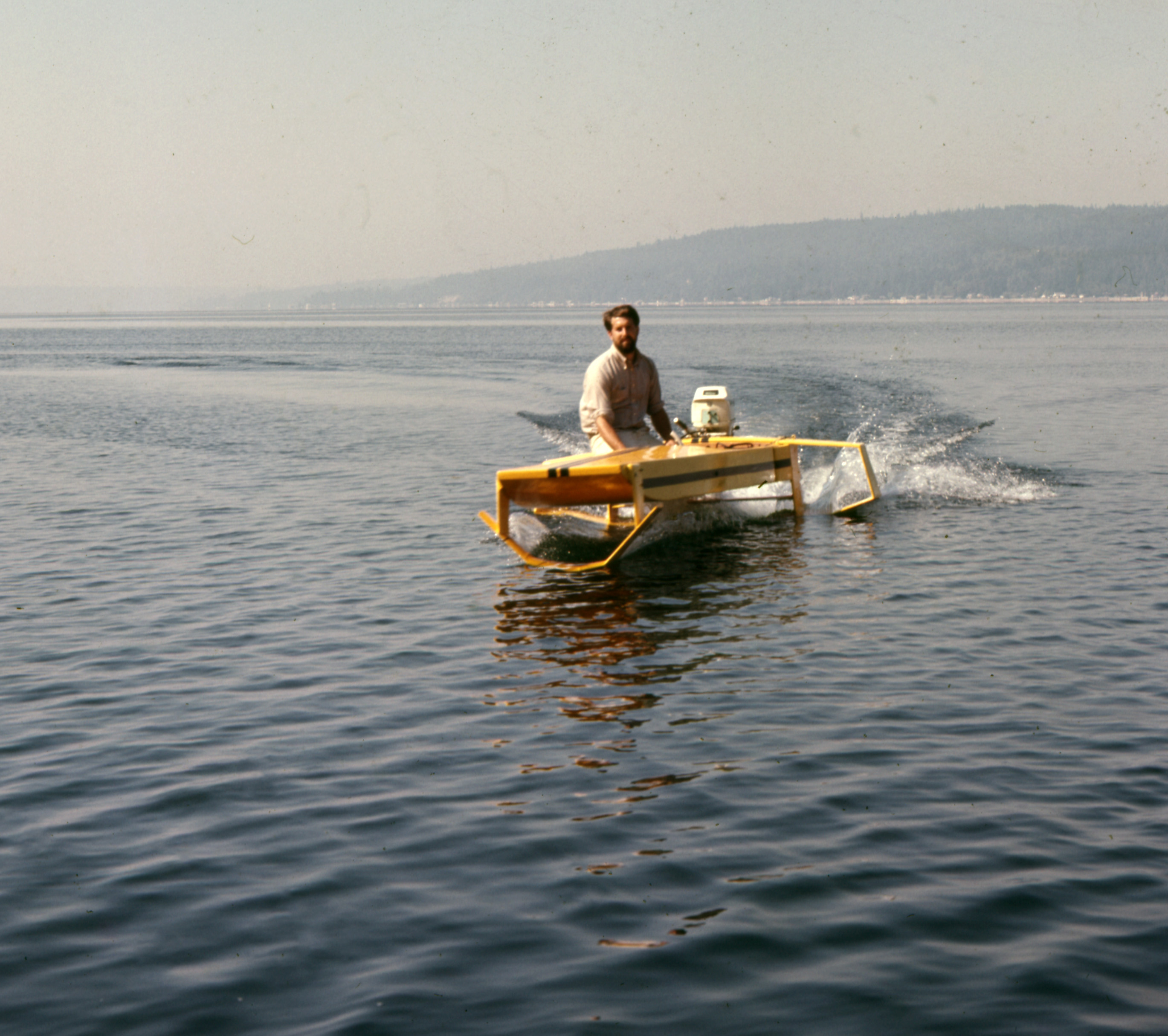 When we designed the orignal Sportfoil back in the early '70's, hydrofoils were actually more common than today. (Ed. note: Not any more! Starting with the foiling America's Cup series, people have been getting up on foils more and more. Now in 2021 there are all sorts of sailing hydrofoils, powered foilboards, kite foilboards, wakeboards, surfboards...It's amazing and fun to see!)