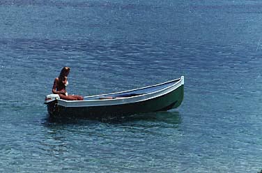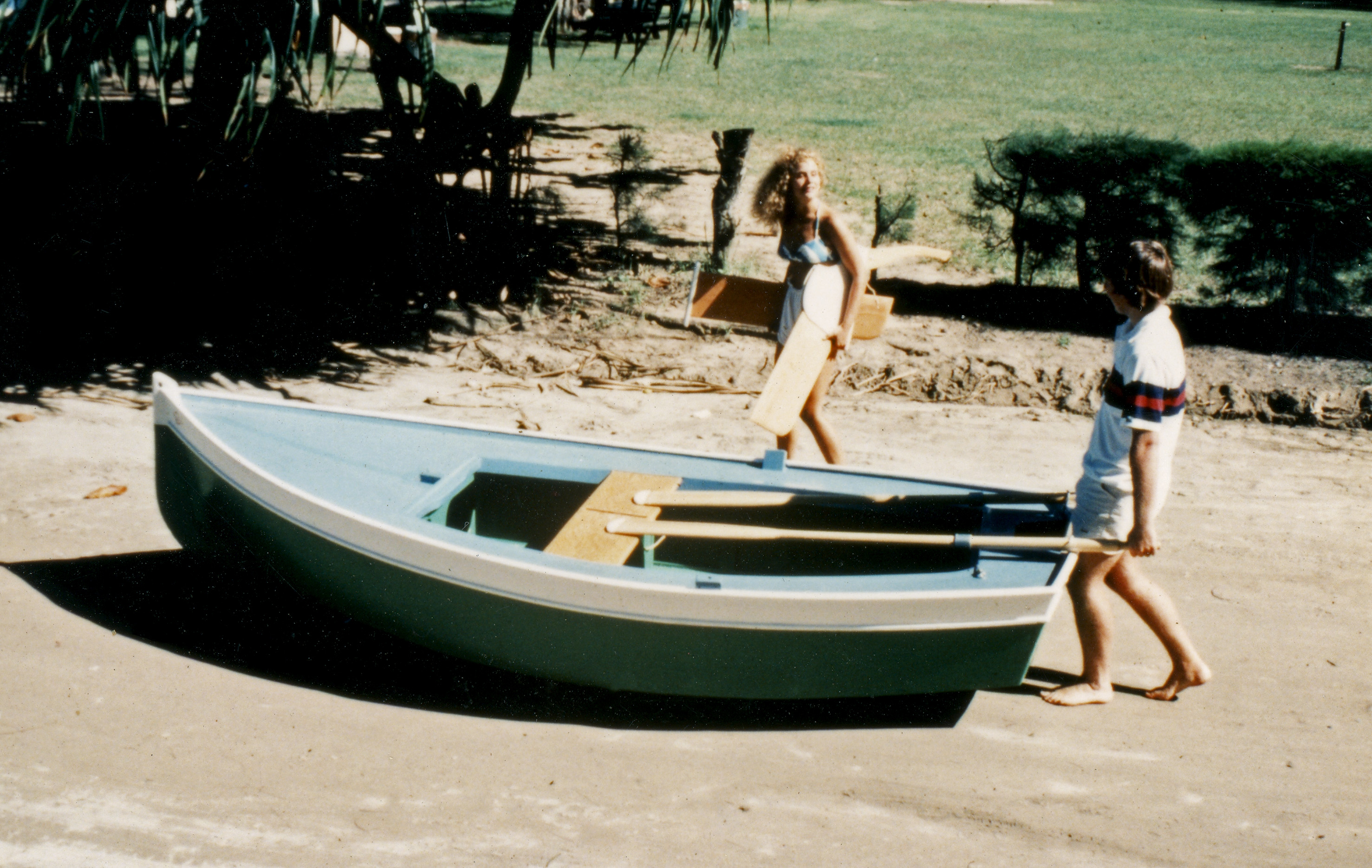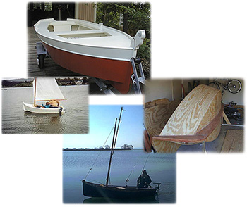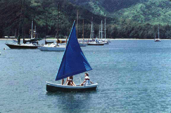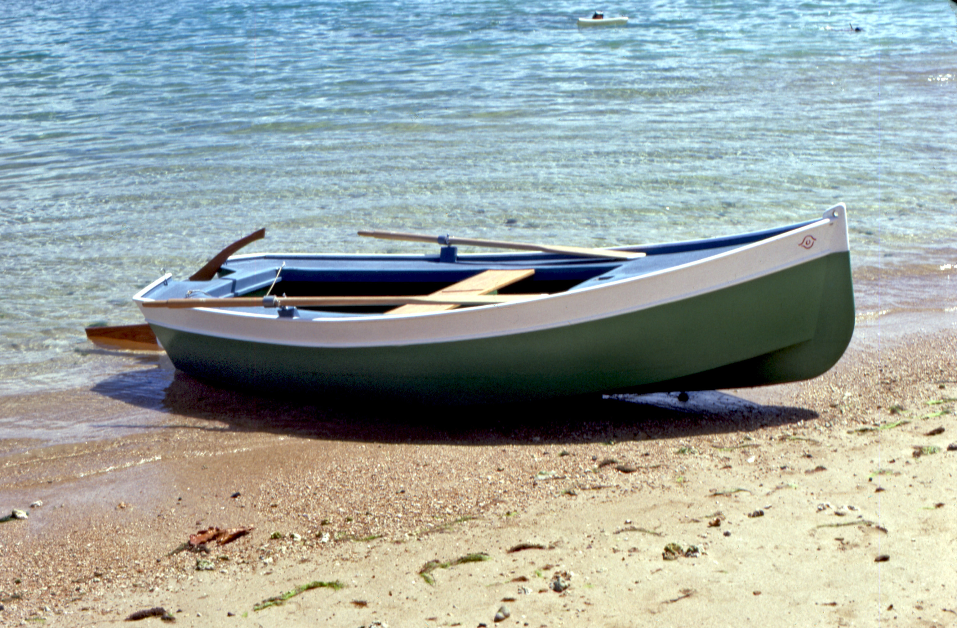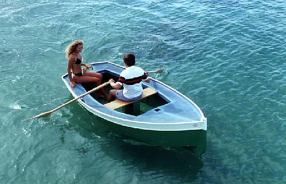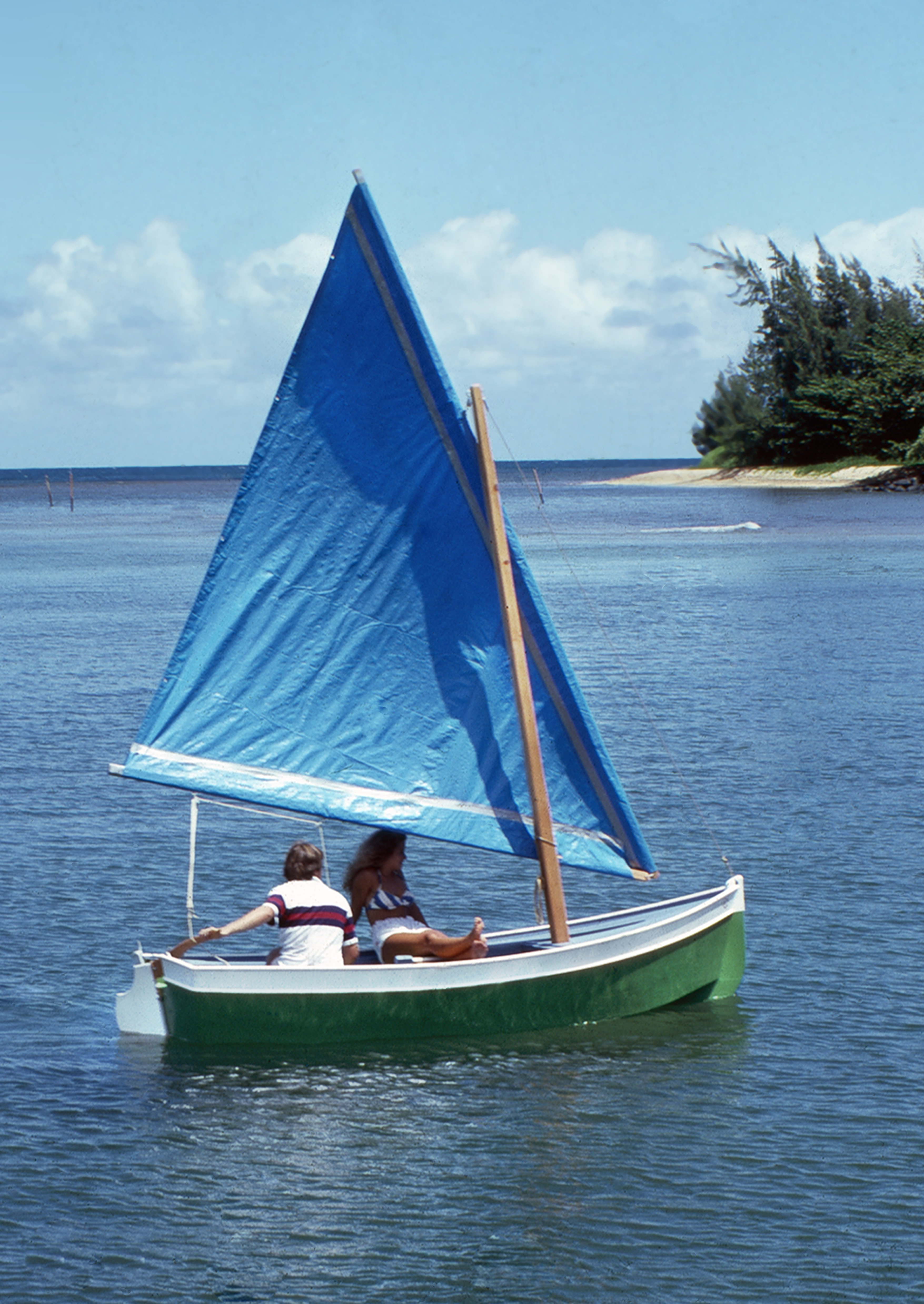 The Triad was based on the centuries-old lines of Greek sponge boats to come up with a versatile, lightweight, romantic little boat that's good for rowing, sailing, or motoring. The 12' Triad can handle engines to 5hp., although we're kind of partial to electric outboards with solar-recharge setups. The hull can handle a good load (we've rowed with five people aboard), and is a stable platform for fishing and diving. The full-length keel makes for straight rowing, as well as sailing with the board up in shallow water (or beaching with the kick-up rudder).