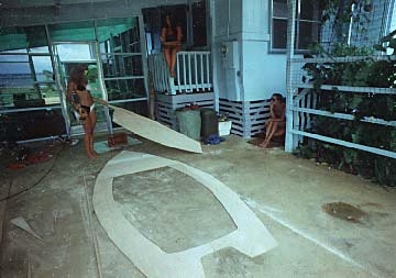 When we were working on the prototype of the Triad, we had access to a nice big area of shallow, protected water. One disadvantage of this area (we thought) was that at low tide it was too shallow to sail. We were happy to just use the Triad in its sail-mode when the tide was in, but we got caught once as the tide had gone out a bit and we either had to row a long way back into a fairly strong wind or try sailing without the daggerboard down. We found out pretty quickly that the Triad does very nicely withthe board up! It certainly prefers to have the daggerboard in place, but in shallow water one can sail on the full-length keel and chine and do darn well! A very handy discovery and we spent the rest of the summer sailing all the time!