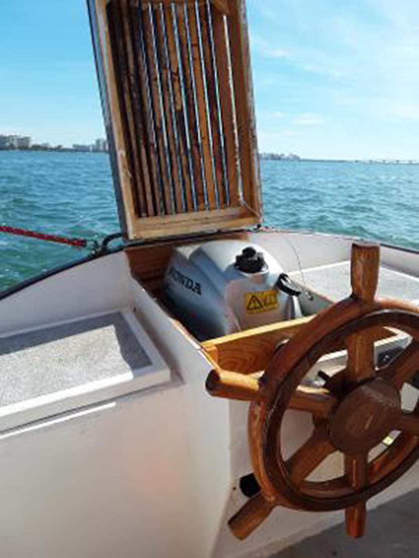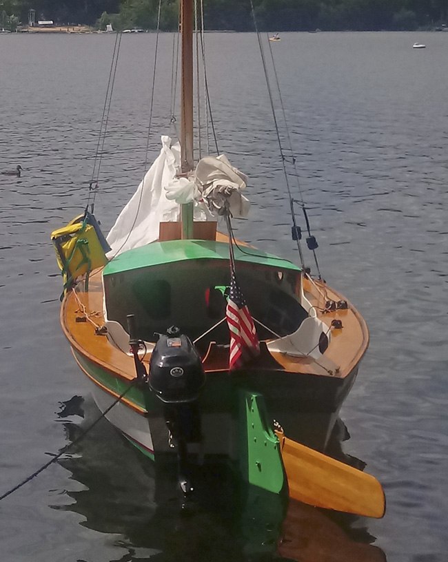 Mr. Aldrich has shared a few photos of the modifications he's made to his Weekender. He added an outboard well! That's a new feature we have not seen on another Weekender (or other Pocket Yacht of ours) before. He has also increased the length and width of his Weekender by 10%. We look forward to seeing more of Mr. Aldrich's Weekender!