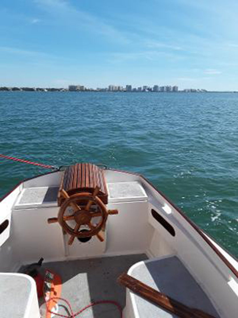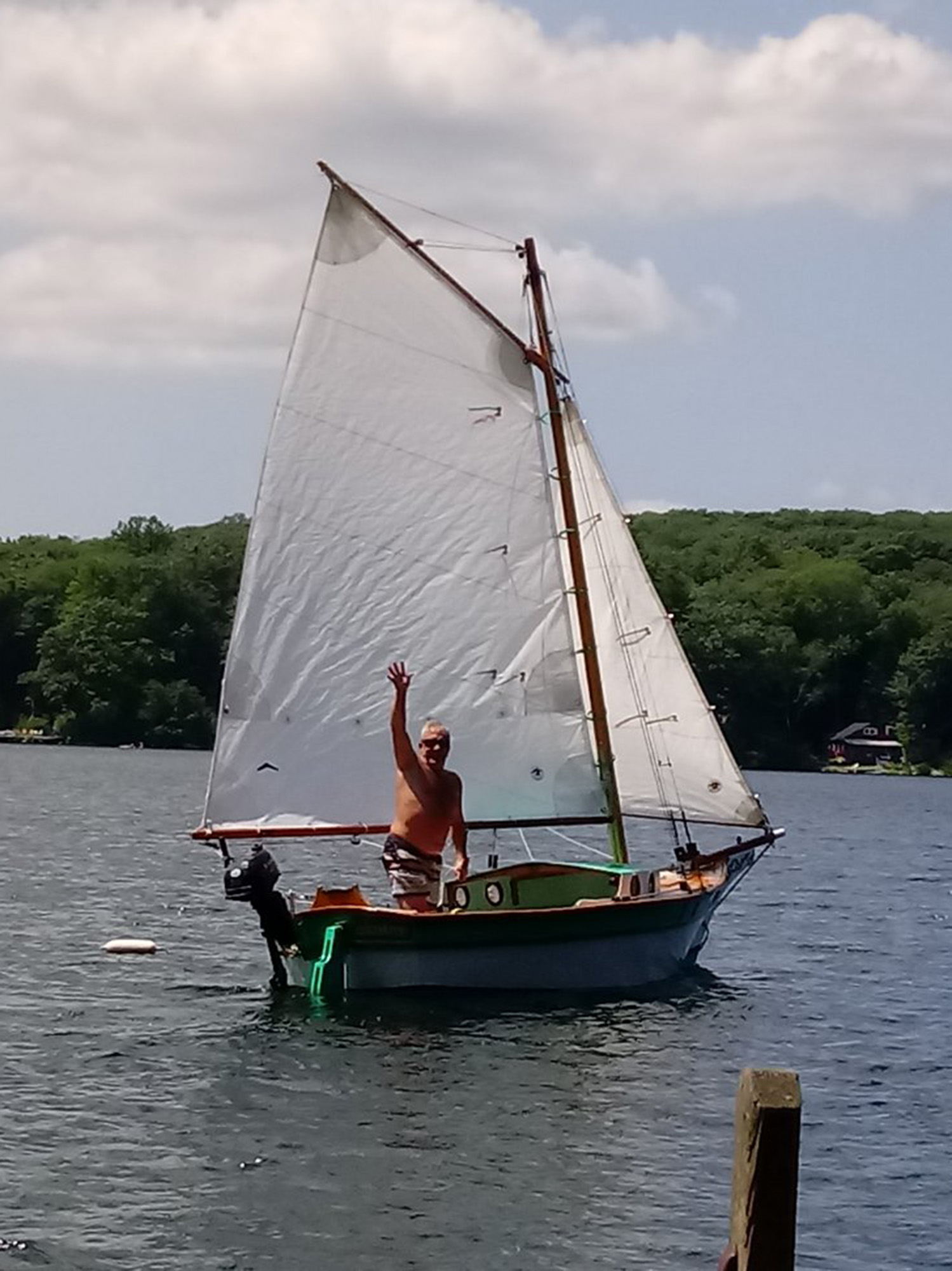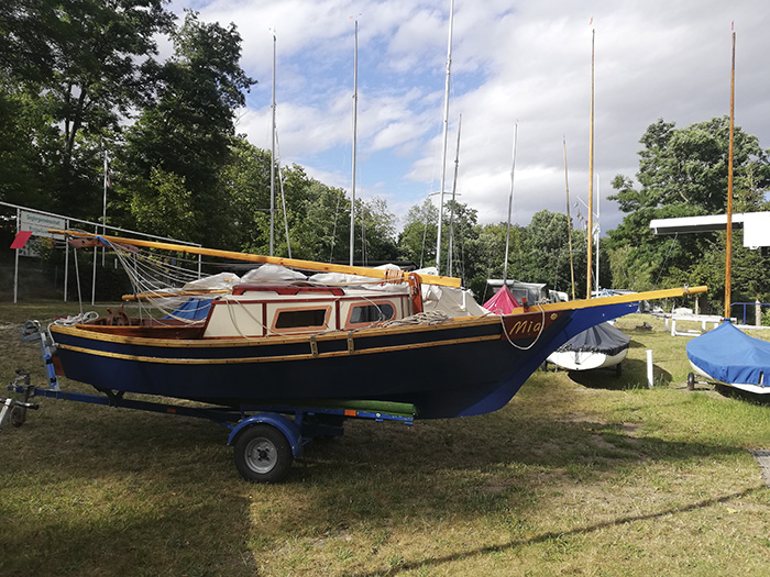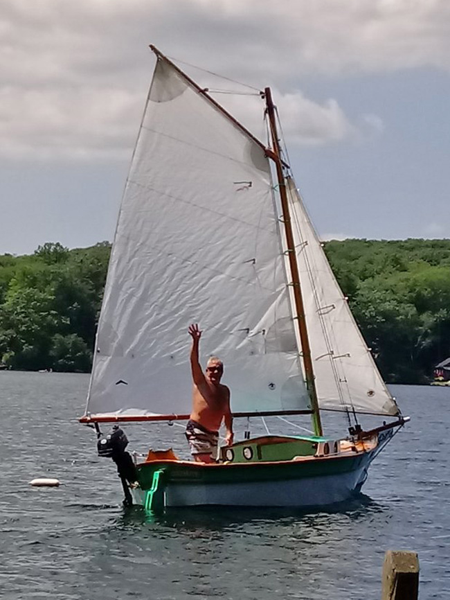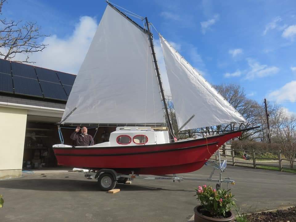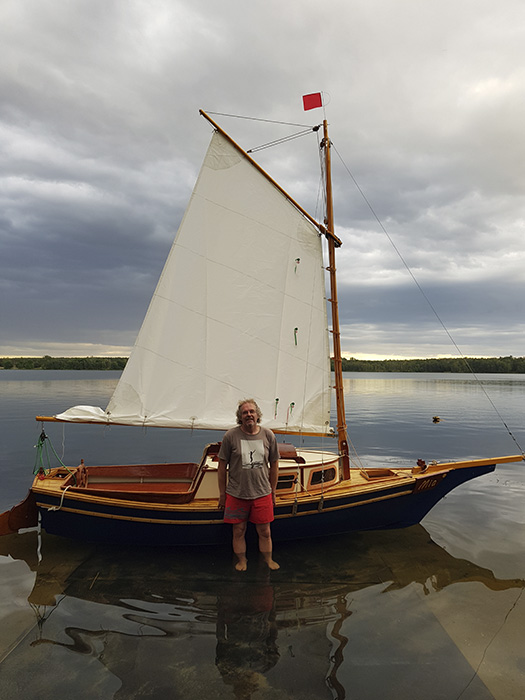 Mr. Small is just about to launch his Weekender, Happy Ours. It's March of '21 now, and he started in July of last year. A PERFECT Covid project! Under nine months is a good speed to build a Weekender, and we are looking forward to seeing sailing shots soon! Thank you, Des!