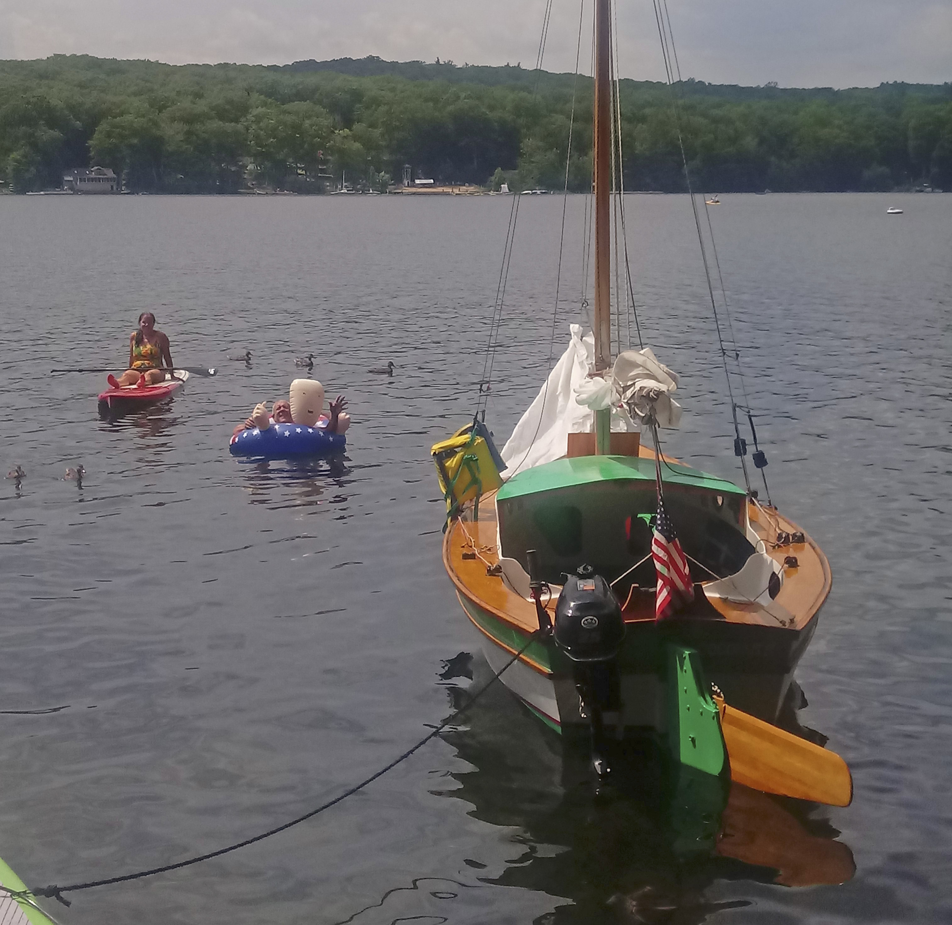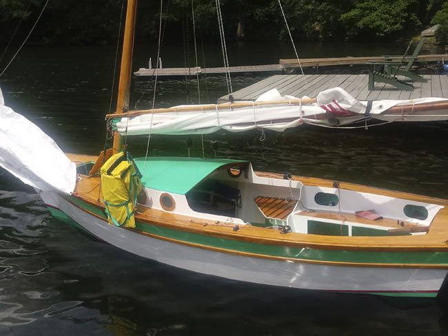 Mr. Kelly has shared photos of his modified Weeeknder (as well as shots of his Wing Dinghy and SuperSkipjack on their own pages!) In the shot above, you can see the shorter, opened-up cabin with added seating just agead of the cockpit seat. This is a unique version of the more open Weekender. I like the look of the shorter cabin, and it still allows for a little space out of the Sun and Winds. Nice!